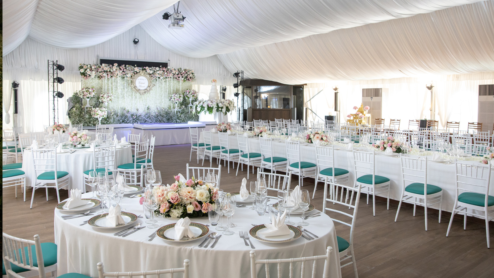 เดอะ มาคีย์ (The Marquee) มาคีย์สีขาวขนาดใหญ่ พื้นที่ 540 ตารางเมตร เหมาะสำหรับผู้ที่กำลังมองหาสถานที่จัดงานแต่งงานแบบกึ่งเอ้าท์ดอร์ ภายในมาคีย์ จัดงานได้หลากหลายรูปแบบไม่ว่าจะเป็นพิธีแต่งงาน งานเลี้ยง งานประชุมสัมมนา หรือแม้แต่งานปาร์ตี้และงานแสดงต่างๆ รองรับแขกได้มากถึง 600 คน ส่วนบริเวณด้านนอกมาคีย์ เป็นสนามหญ้าเขียวและเสานาฬิกาวินเทจที่ตั้งตระหง่านบนสนาม รับกับแบ็คกราวน์มาคีย์สีขาว ทำให้คุณรู้สึกเสมือนอยู่ในบรรยากาศที่มีกลิ่นอายของความเป็นอังกฤษ