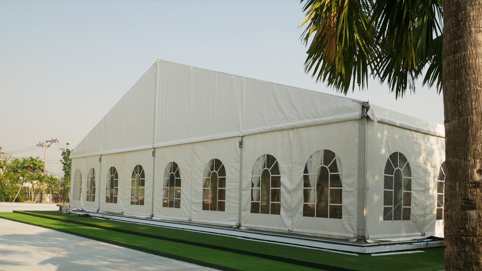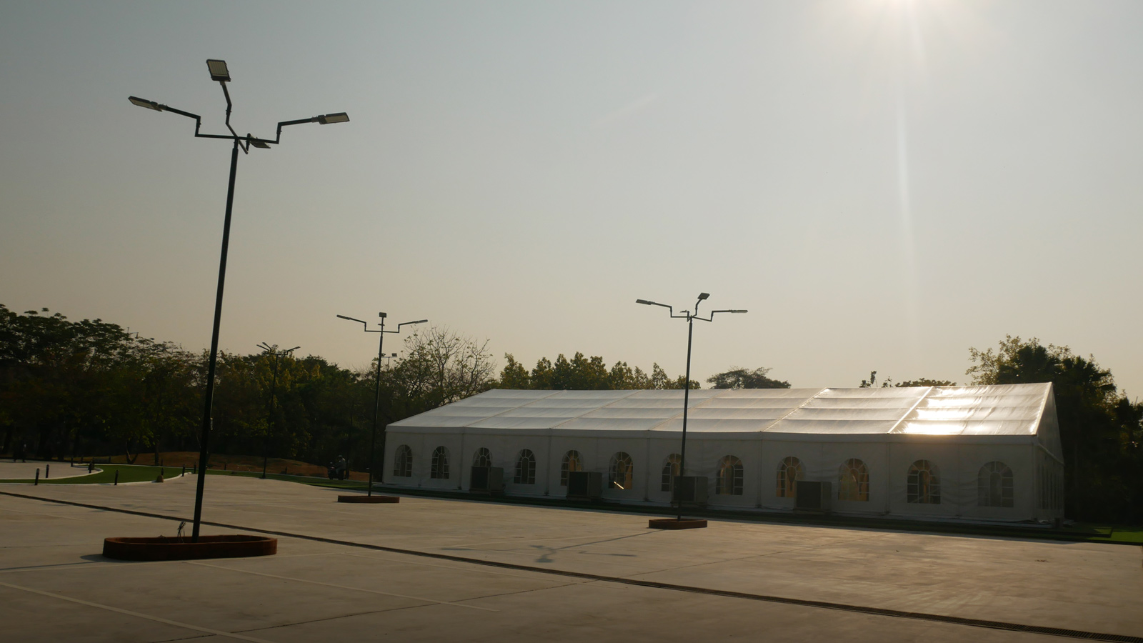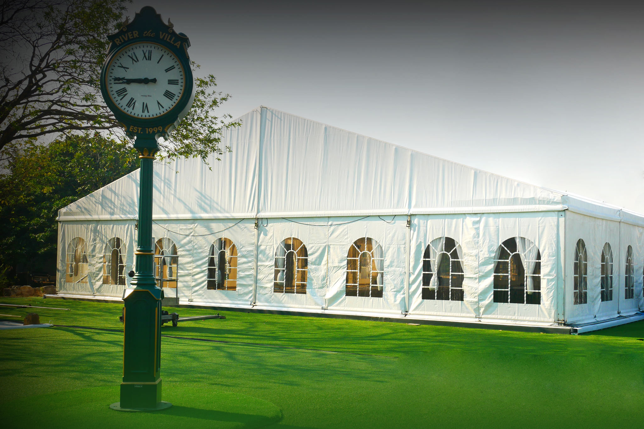 เต็นท์สีขาว ขนาดใหญ่กว่า 240 ตารางเมตร บนพื้นที่ขนาดใหญ่กว่า 25 ไร่ ท่ามกลางธรรมชาติริมแม่น้ำเจ้าพระยาในจังหวัดนนทบุรี พร้อมสิ่งอำนวยความสะดวกครบครัน
